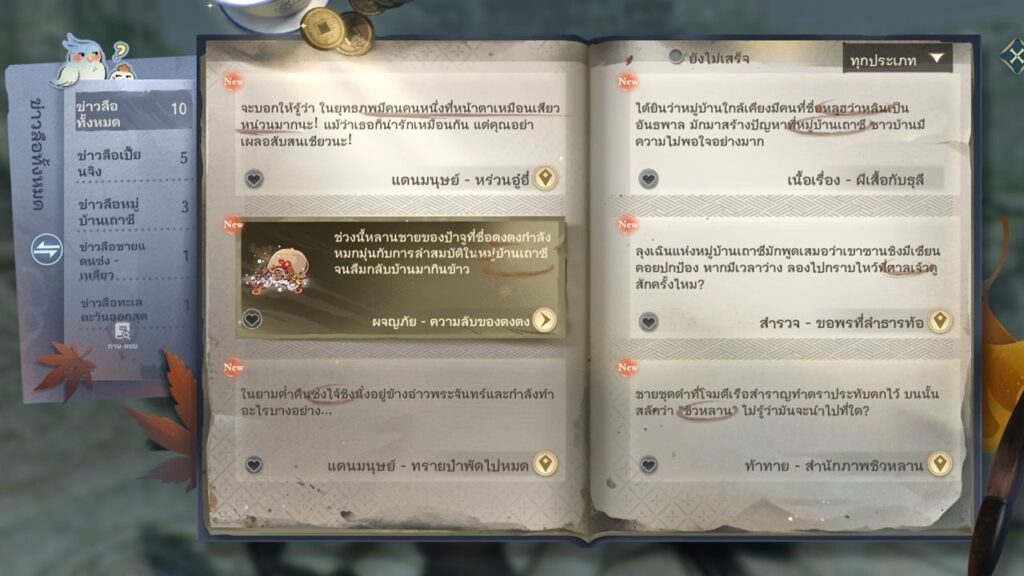 เพราะผมชอบเรื่องราวจอมยุทธ์กำลังภายใน การเดินทางไปแห่งหนใดก็เจอเรื่องราวต่างๆ มันจึงดึงดูดและชวนติดหนึบ ถึงแม้ว่าด้วยความเป็นเกมมือถือของมันอาจจะจำเป็นต้องออกแบบเควสต์ที่ไม่ได้ลึกหรือยากเย็นอะไรนัก แต่ก็ทดแทนด้วยความน่าสนใจของสตอรี่และการเล่าเรื่องที่เอาตรงๆ คือกับเควสต์เล็กๆ พี่ไม่ต้องทำขนาดนี้ก็ได้ แต่ทางทีมงานก็ทำ แล้วเยอะด้วยสิพวกเควสต์น่าสนใจเหล่านี้